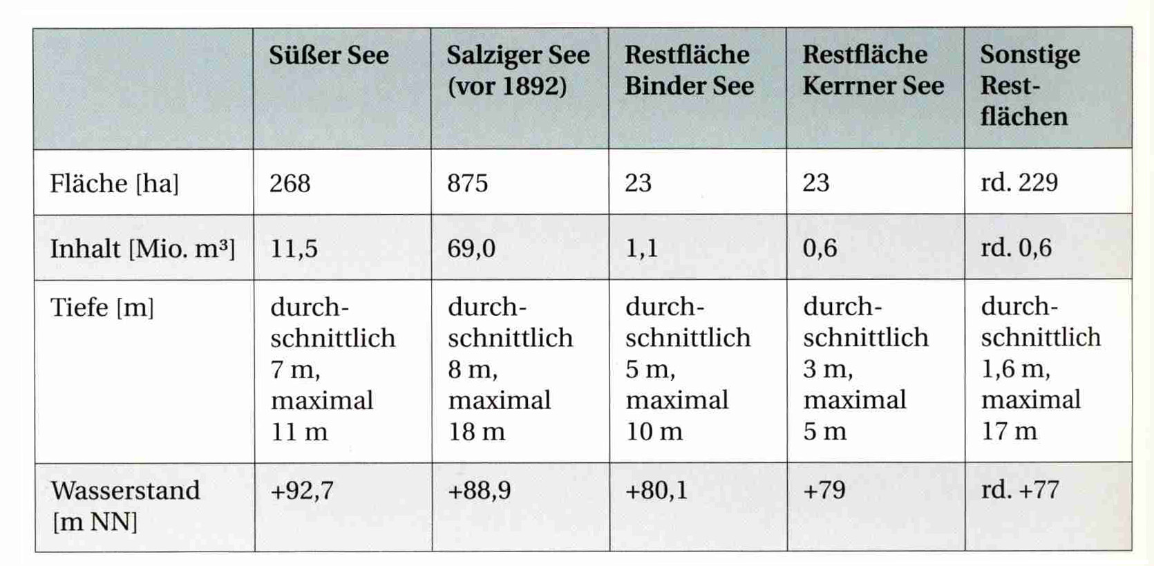 Größenangaben zu den Mansfelder Seen (MansfeldBand3)