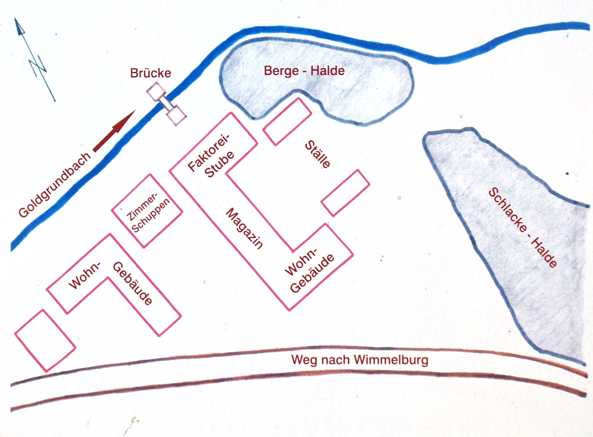 Lageplan der Neuen Hütte um 1864 (Quelle Infotafel am Standort)