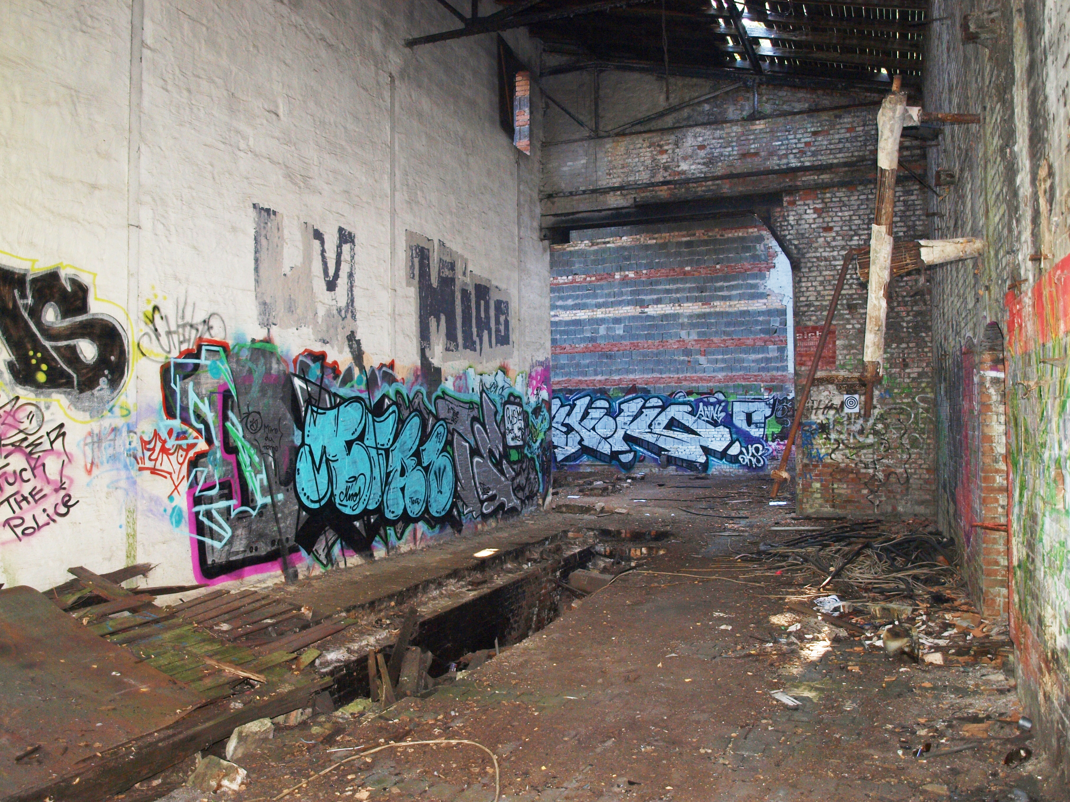 In der Ruine der Bahnanlagen der Anschlussbahn (Foto Sauerzapfe 2018)