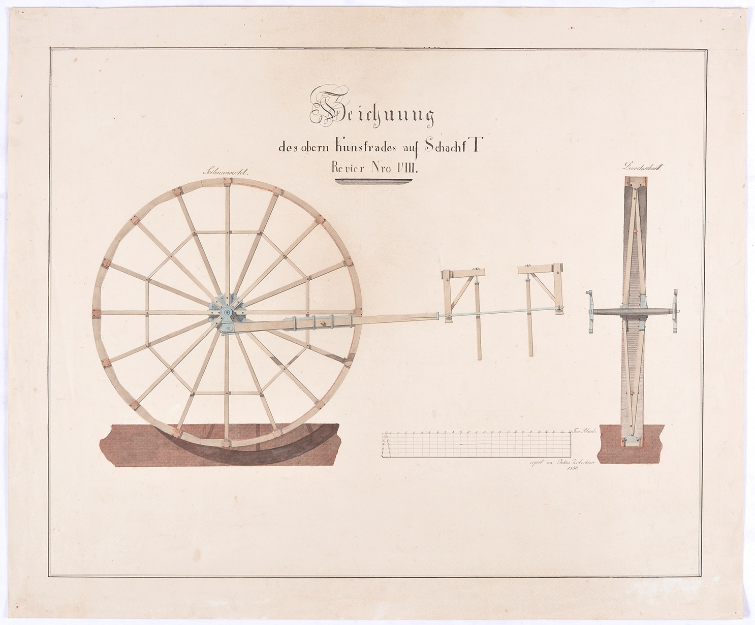 Zeichnung des obern Kunstrades auf Schacht T Revier Nro VIII. - Herkunft/Rechte: Mansfeld-Museum im Humboldt-Schloss (CC BY-NC-SA)