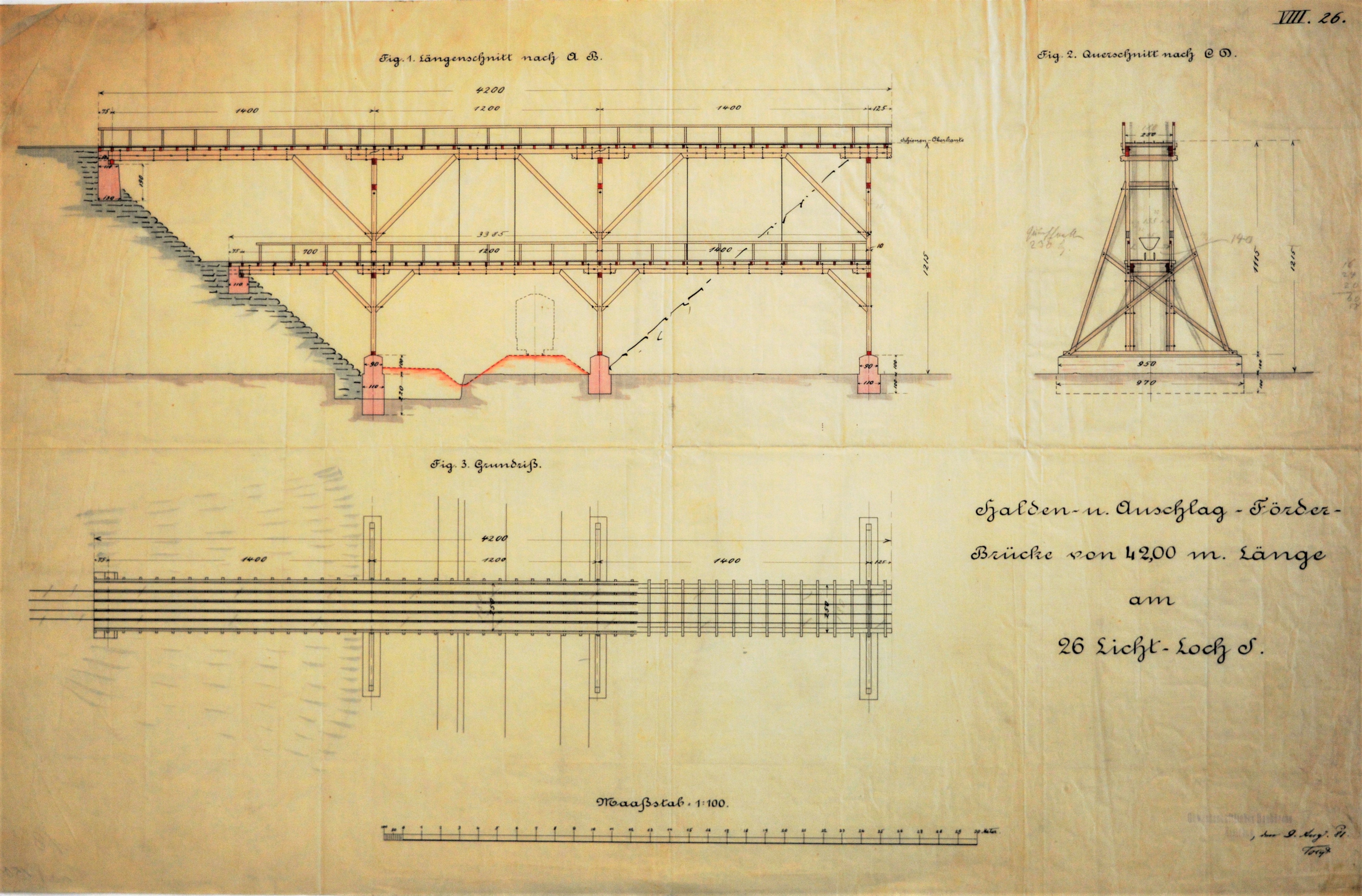 Zeichnung für eine Förderbrücke am Lichtloch 26 bei Großörner im Maßstab