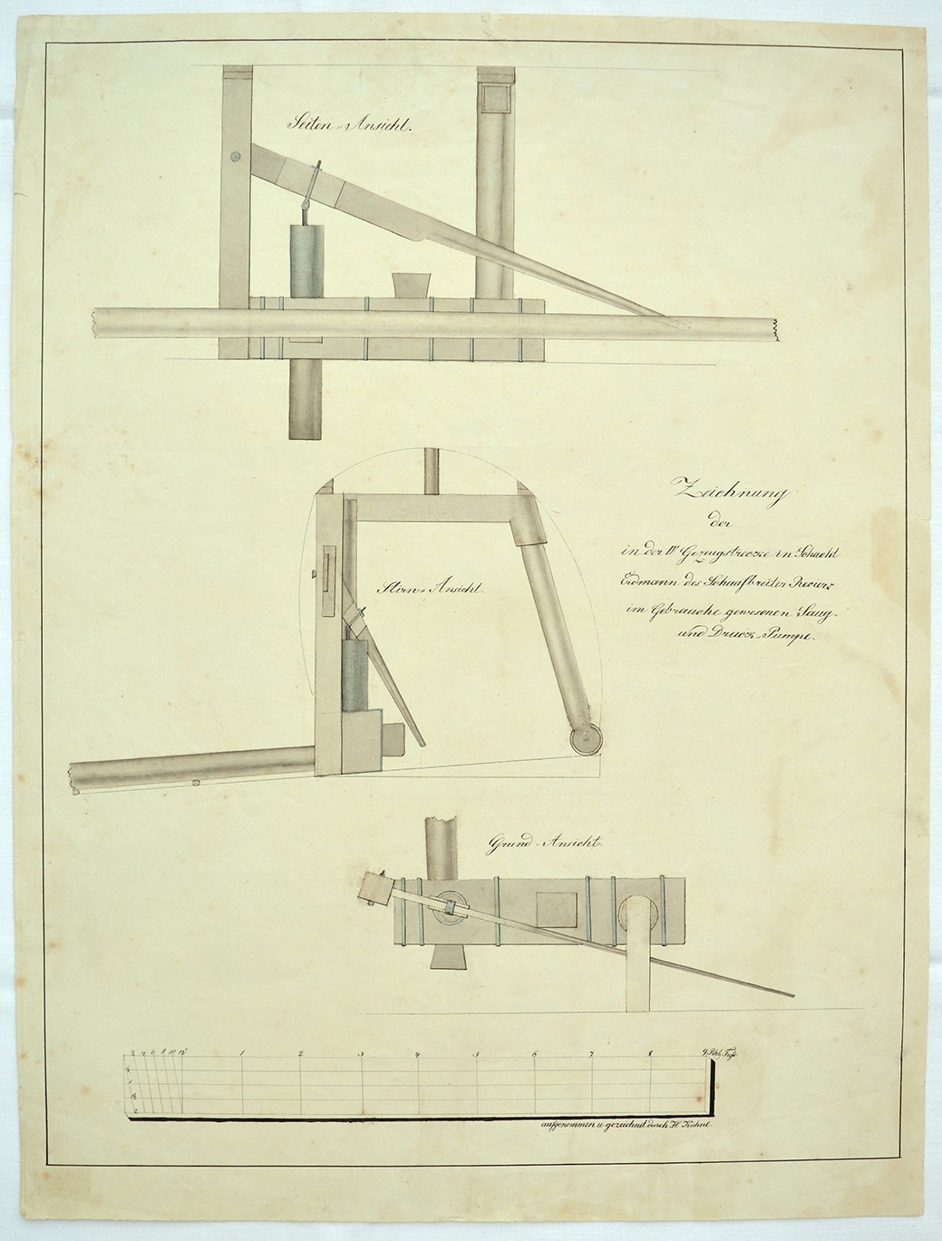 im Erdmannschacht in Seitenansicht, Stirnansicht und Grundansicht mit einem