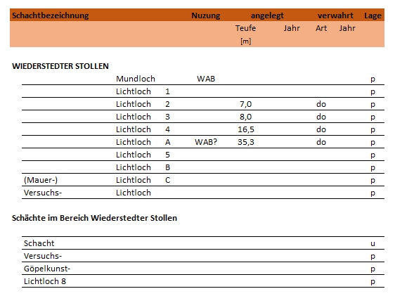 Lichtlöcher und Schächte-Wiederstedter Stollen