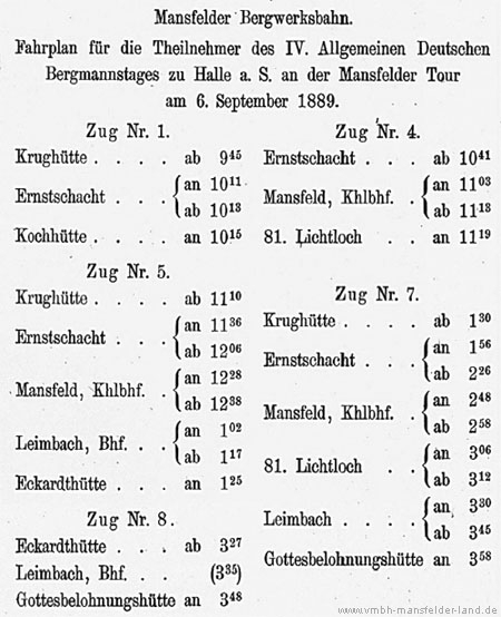 Mansfelder Bergwerksbahn - Erste touristische Erwähnung 1889