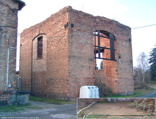 Fördergerüst-Unterbau des Hohenthal-Schachtes II (Hans-Seidel-Schacht II) bei Helbra im Jahr 2010