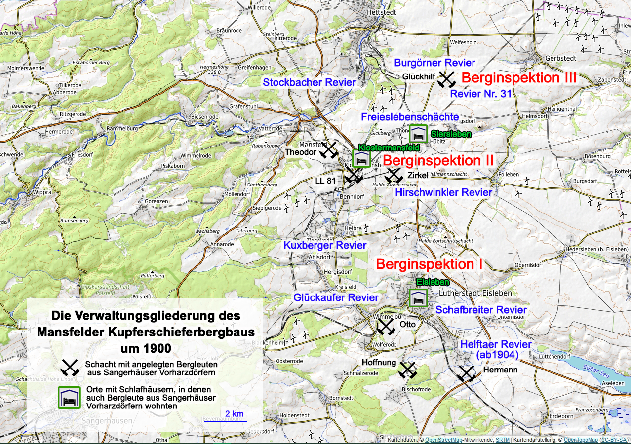 Schächte mit Anlegung von Bergleuten aus den Sangerhäuser Vorharzdörfern
