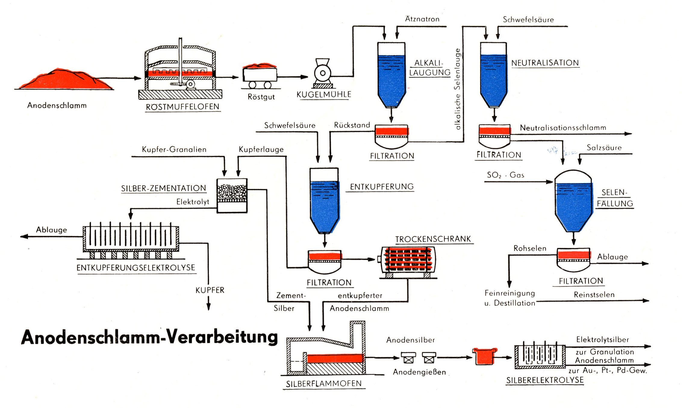 Anodenschlammverarbeitung - Aus „Die Gewinnung und Verarbeitung des Mansfelder Kupferschiefers“ (Herausgegeben vom VEB Mansfeld Kombinat)