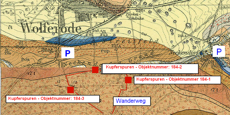 Zusammengefügte Ausschnitte aus der Geologischen Karte von Preußen und benachbarten deutschen Ländern; Blatt Eisleben – Herausgegeben 1930 sowie aus der Geologischen Karte der DDR, Erdeborn-4535, ohne Quartär; 1972, (Veröffentlichung gestattet mit freundlicher Genehmigung durch das LAGB Sachsen-Anhalt); Bearbeitet durch Dr. S. König