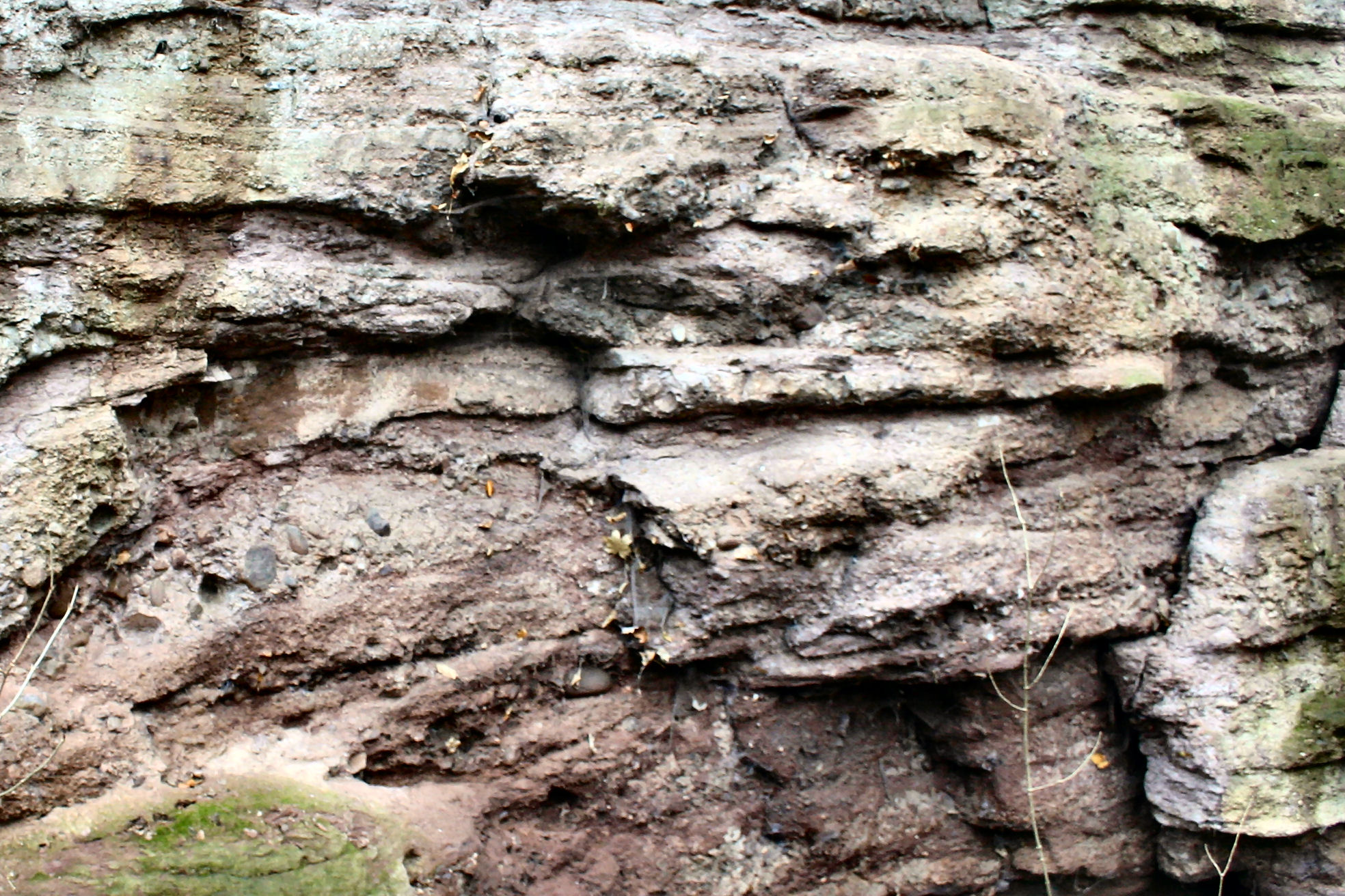 Schichtgrenze zwischen dickbankigen Sandsteinen u. Konglomeraten (Foto Dr. S. König)