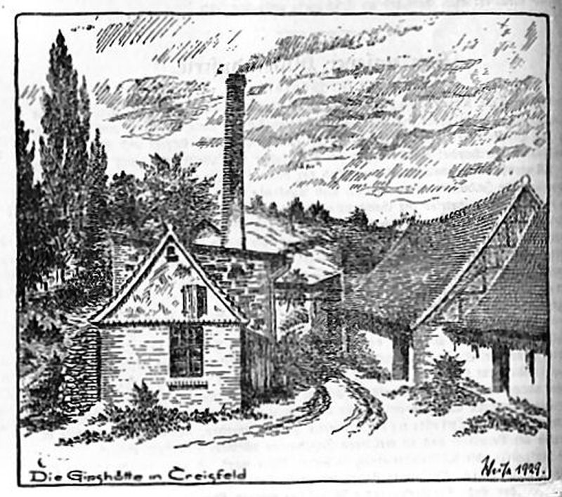 Zeichnung von der Gipshütte in Kreisfeld (Quelle Wöhlbier "Mein Mansfelder Land" 1929)