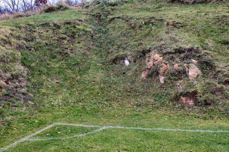 Sportplatz Wolferode; der Eckpunkt wurde im Gipsgestein angelegt (Foto Dr. S. König)